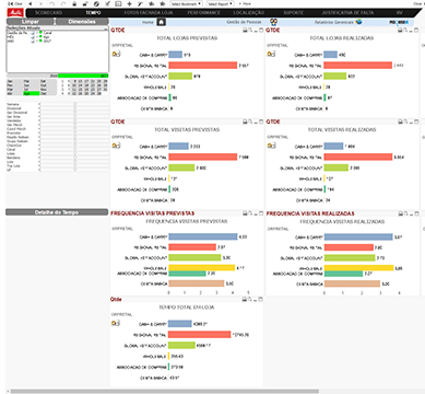 Relatórios e análises gráficas: as informações podem ser extraídas e examinadas sem a necessidade de outro sistema de Business Intelligence. As análises gráficas são constantemente alimentadas pelos dados coletados pela equipe de campo.